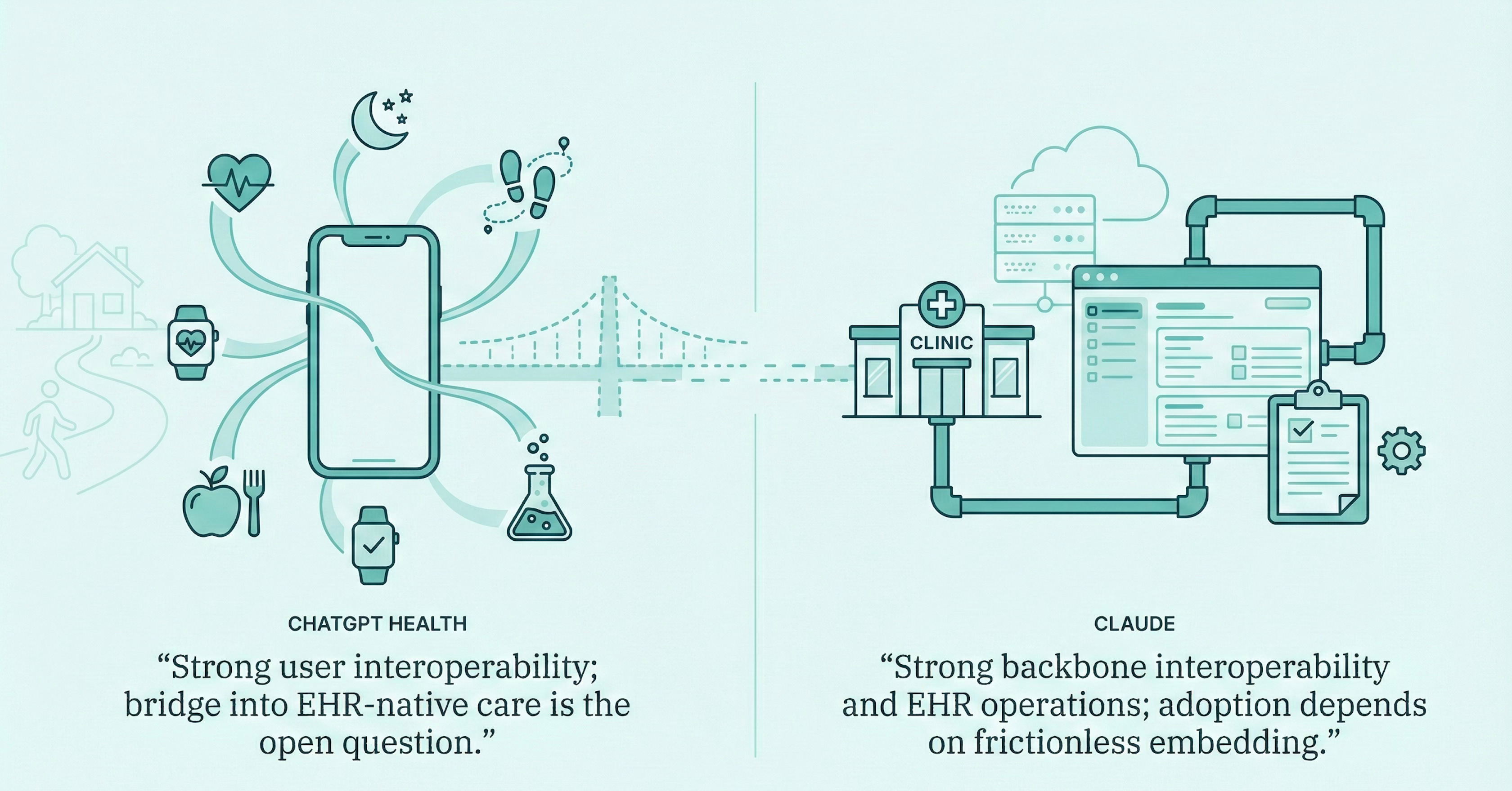 Net: ChatGPT Health is the Adoption play, with a clinical interoperability gap that will define whether it becomes infrastructure.